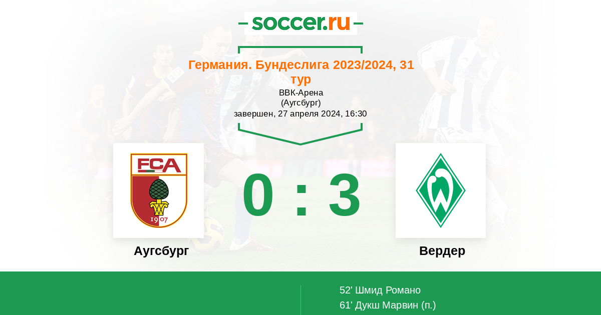 52' ГолЛоготип ВердерШмид Романо (20, п) (Логотип ВердерДукш Марвин (7, н)) - 0:1