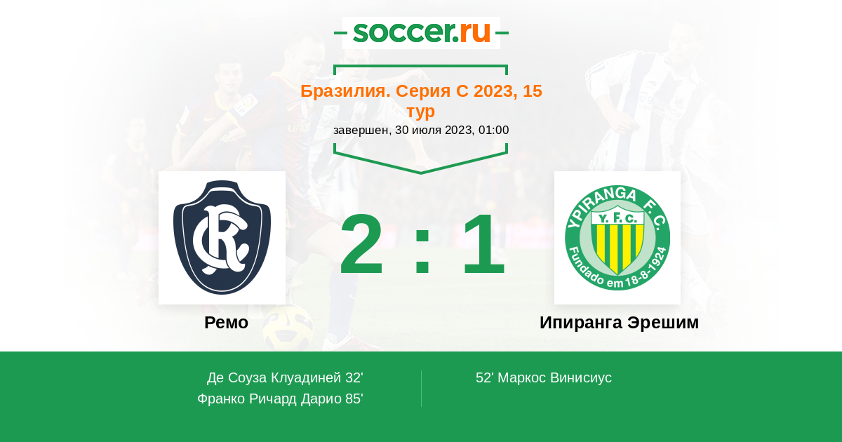 Логотип Ипиранга ЭрешимКлаиртон Нетто выходит на поле