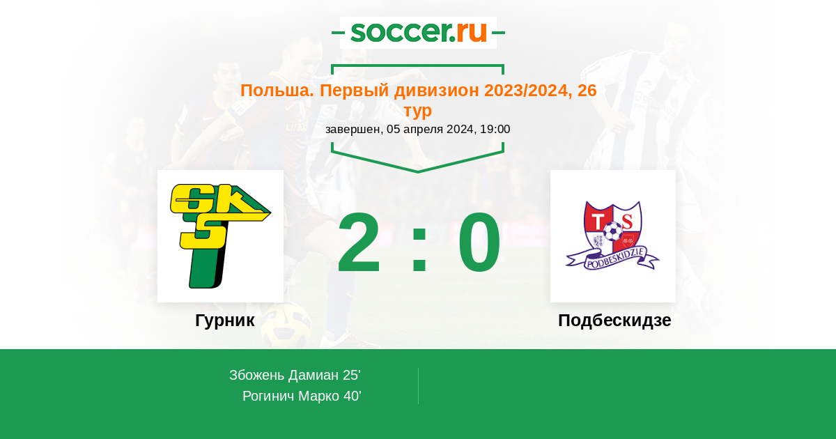 90' ЗаменаЛоготип ПодбескидзеЖиолковски Матеуш уходит с поля