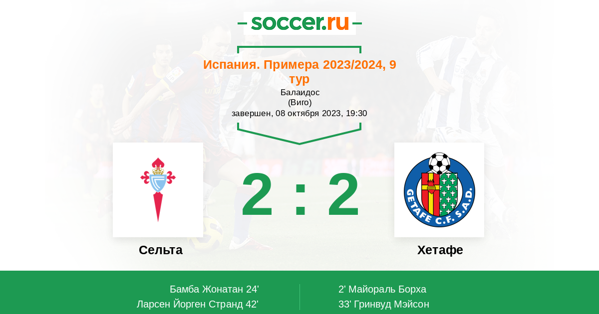 А так все отлично, если бы не быстрый гол Хетафе, Сельта забрала бы 3 очка. Сельта хорошо контролировала мяч до удаления игрока соперника, потом соперник вжался в свои ворота.