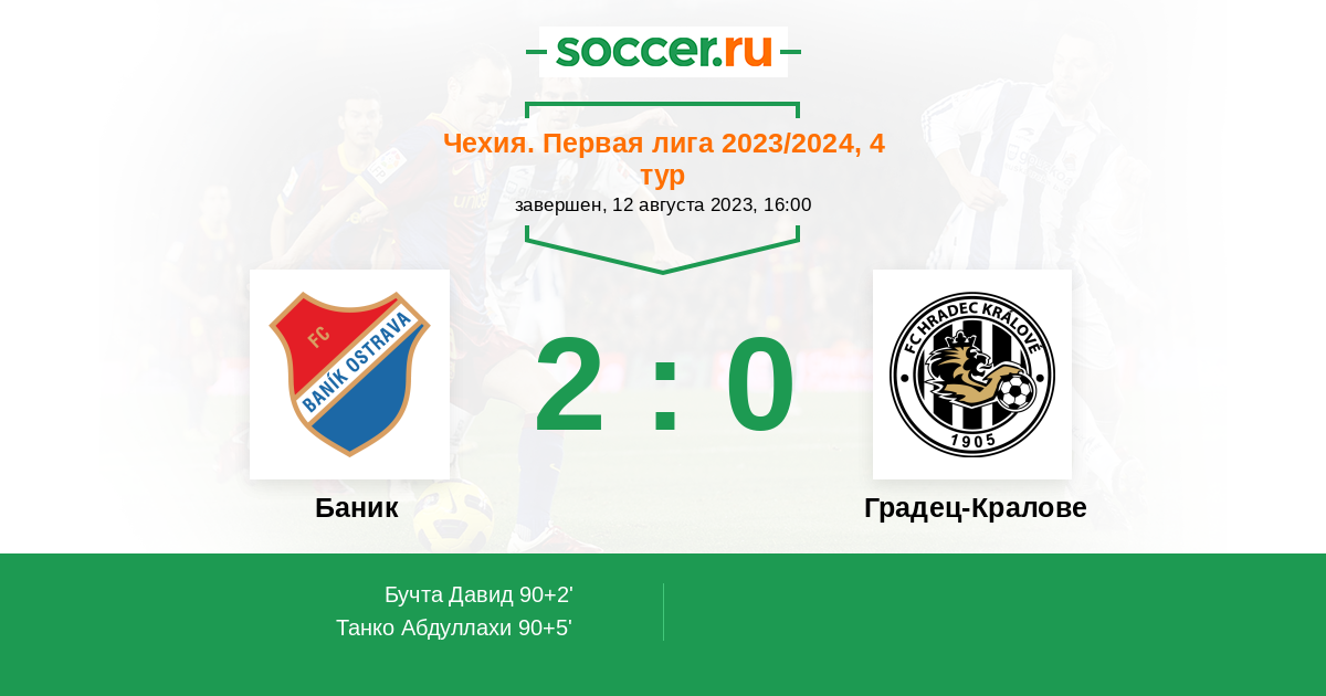35' Желтая карточкаЛоготип Градец-КраловеЧех Франтишек (25) получил ж.к.
