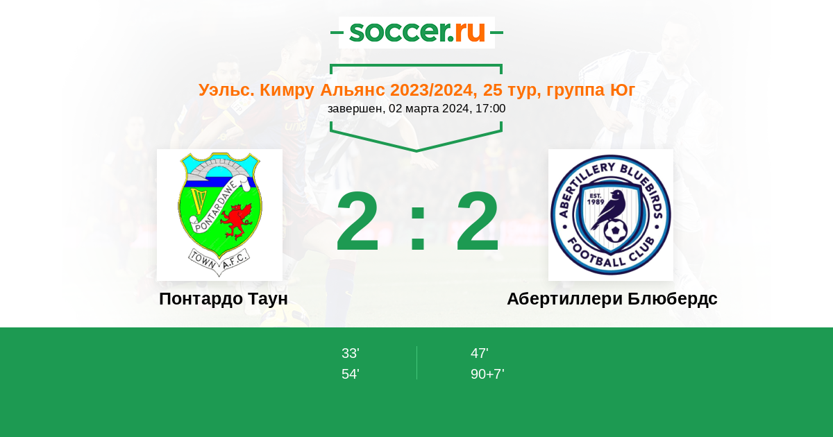 33' ГолЛоготип Понтардо ТаунC. Harrris - 1:0