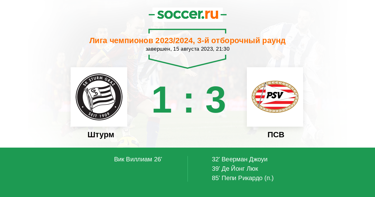 Думаю, что и в ответной встрече, даже на выезде, ПСВ не испытает сильных проблем и относительно легко обыграет Штурм.