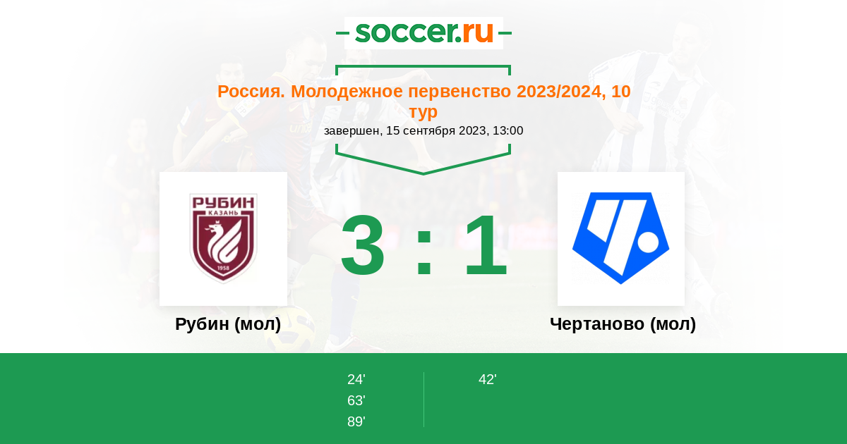 24' ГолЛоготип Рубин (мол)E. Mukba - 1:0