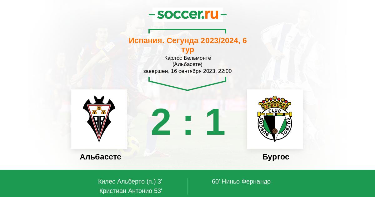 2 | Офсайды | 1 |