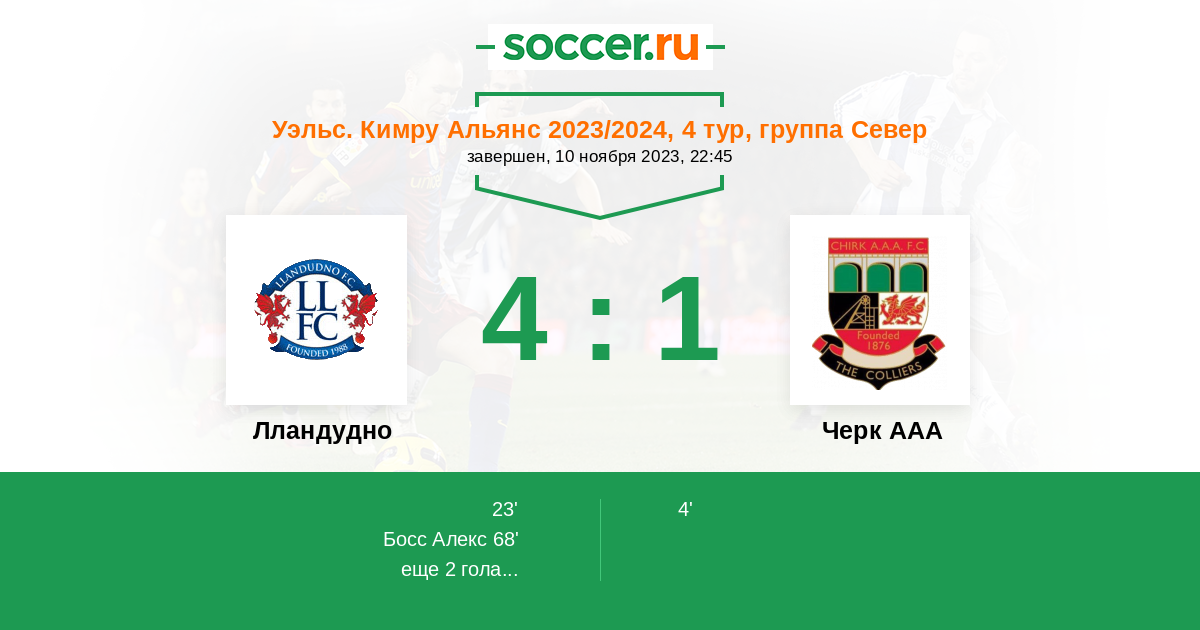 23' ГолЛоготип ЛландудноD. Holland - 1:1