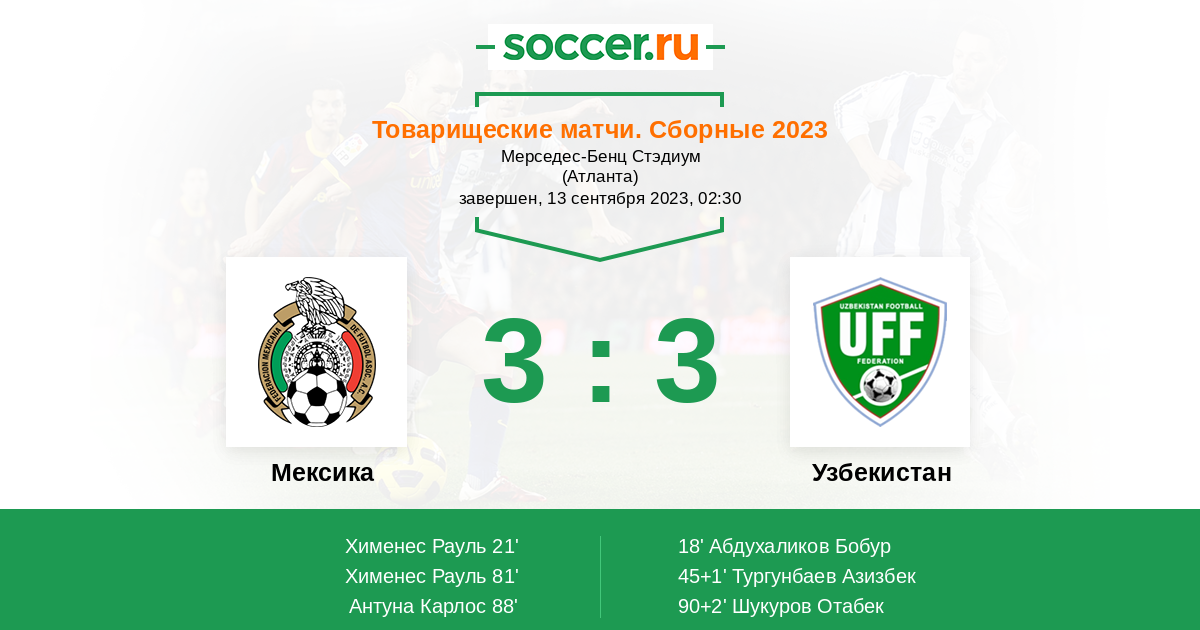 УзбекистанХименес Сантьяго (11) выходит на поле