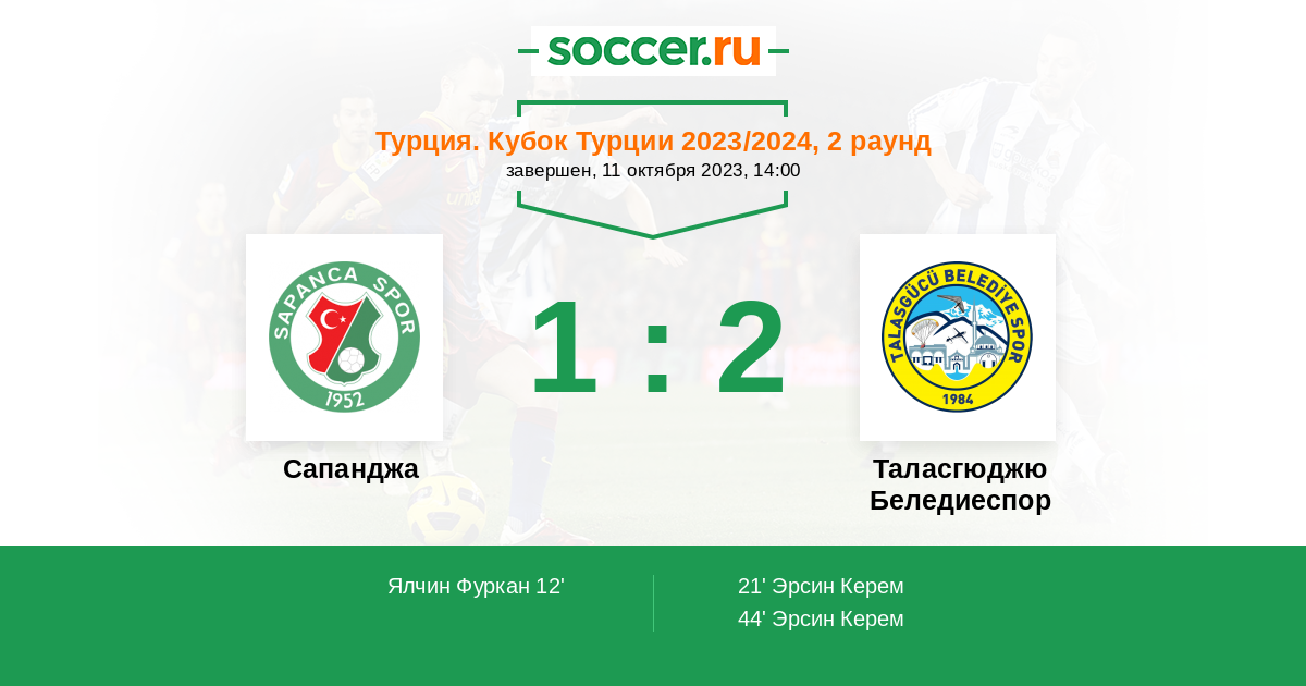 44' ГолЛоготип Таласгюджю БеледиеспорЭрсин Керем (19) - 1:2