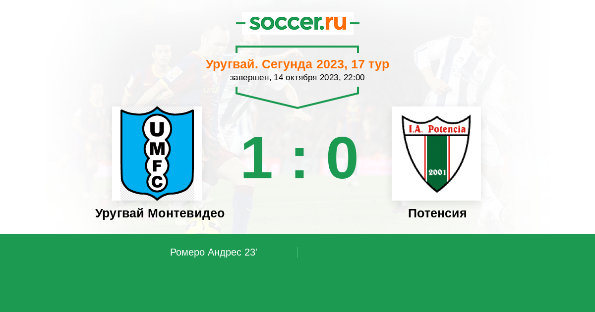 58' ЗаменаЛоготип Уругвай МонтевидеоРомеро Андрес уходит с поля