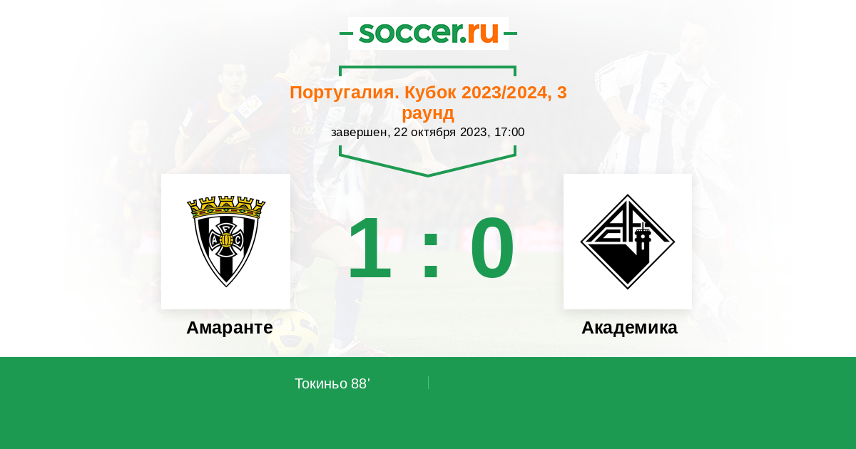 88' ГолЛоготип АмарантеТокиньо (8) - 1:0