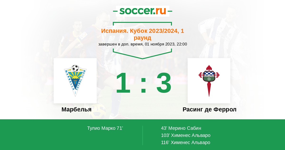 71' ГолЛоготип МарбельяТулио Марко (12, п) (Логотип МарбельяГато (17, н)) - 1:1
