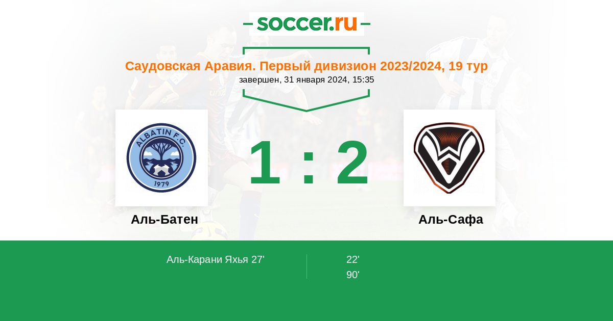 Аль-Батен является крепким середнячком первого дивизиона аравийского чемпа и дома выступает весьма уверенно. Поэтому не особо верится, что хозяева могут сегодня проиграть аутсайдеру Аль-Сафе, набравшему в гостях лишь 5 очков в 9 матчах