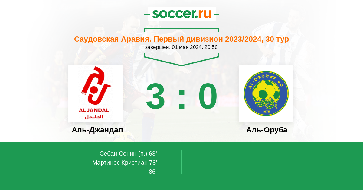 63' Гол с пенальтиЛоготип Аль-ДжандалСебаи Сенин - 1:0 (П)