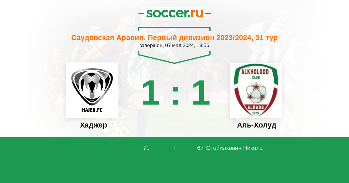 71' ГолЛоготип ХаджерB. Nawaf - 1:1