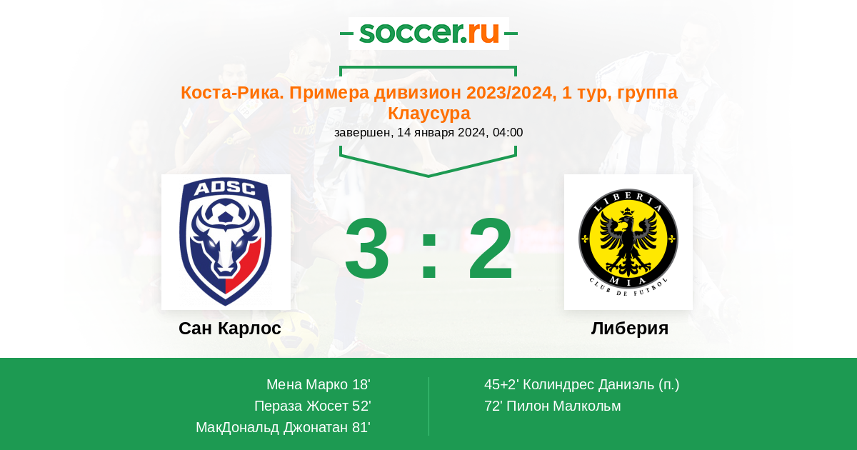 67' ЗаменаЛоготип Сан КарлосМена Марко уходит с поля