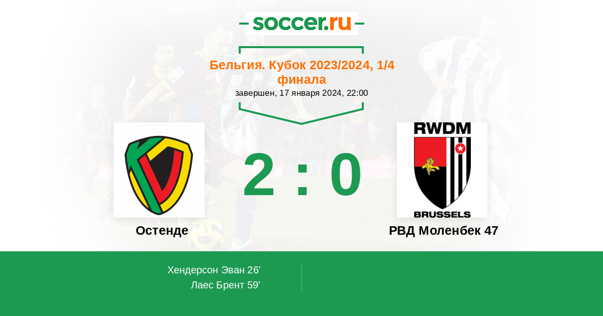 78' ЗаменаЛоготип ОстендеД'Хаесе Робби (29) уходит с поля