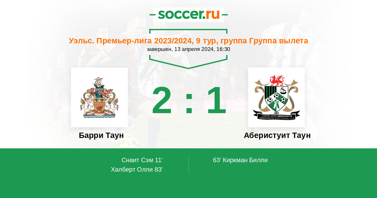 11' ГолЛоготип Барри ТаунСнаит Сэм - 1:0