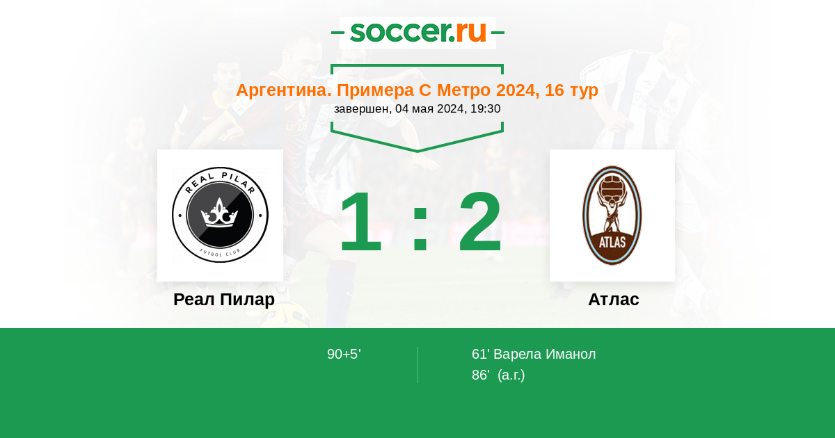 90+5' ГолЛоготип Реал ПиларA. Mendoza - 1:2