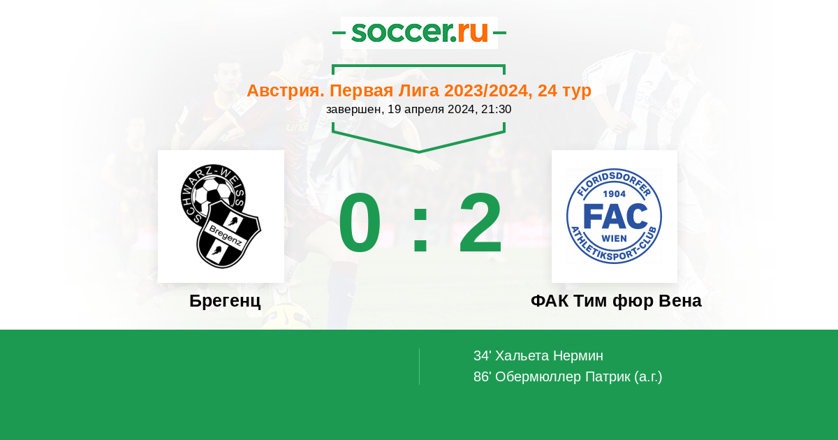 86' АвтоголЛоготип БрегенцОбермюллер Патрик (38) - 0:2 (А)