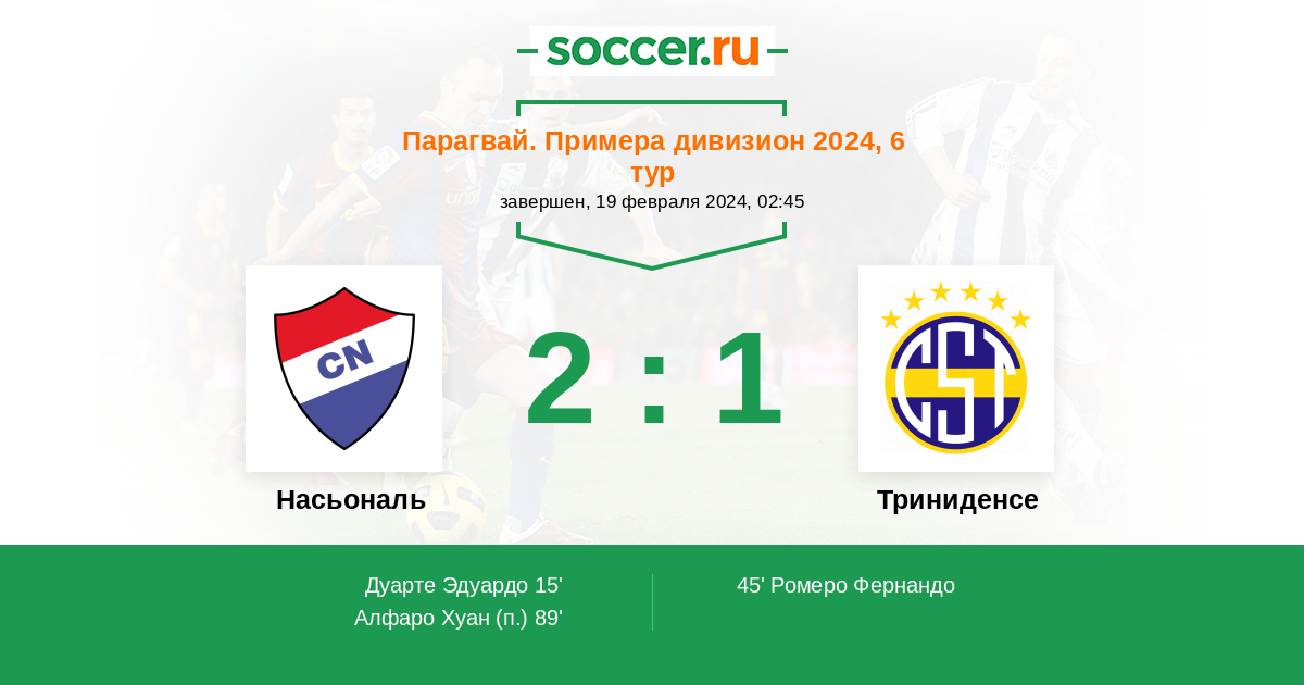 18' Желтая карточкаЛоготип НасьональКабальеро Тьяго (10) получил ж.к.