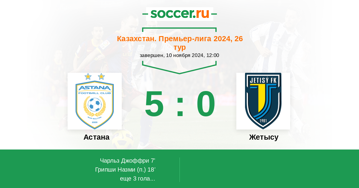 7' ГолЛоготип АстанаЧарльз Джоффри (9, н) - 1:0
