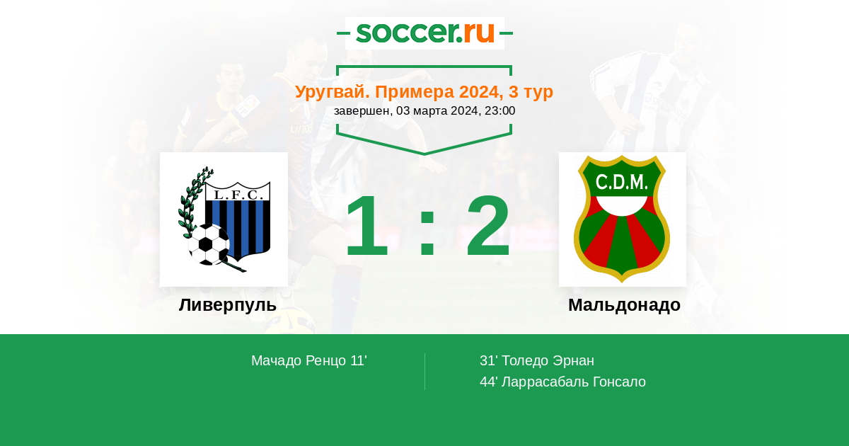 11' ГолЛоготип ЛиверпульМачадо Ренцо (9, н) - 1:0