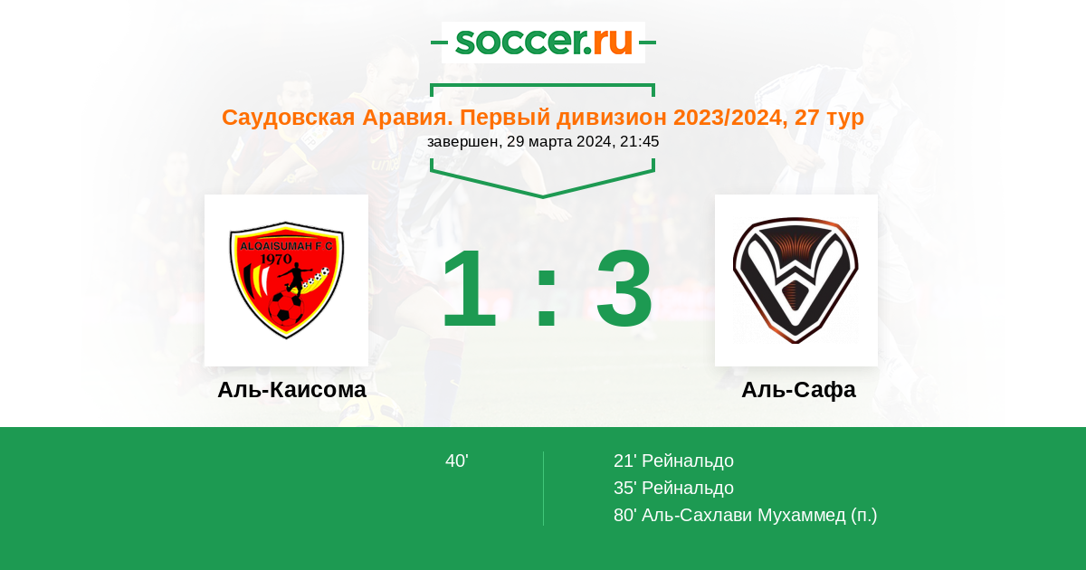 21' ГолЛоготип Аль-СафаРейнальдо - 0:1