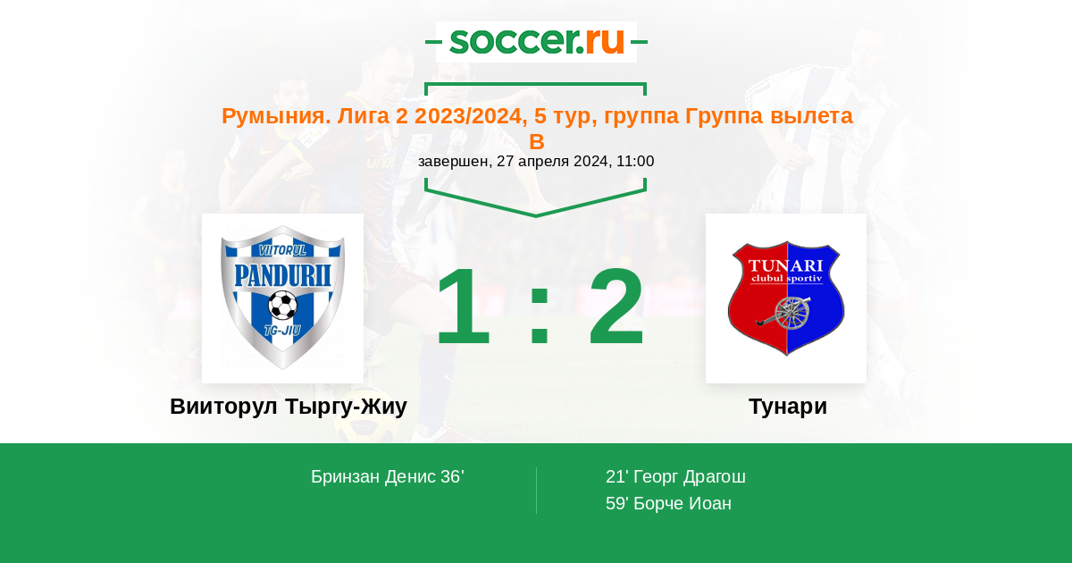 74' ЗаменаЛоготип Вииторул Тыргу-ЖиуПопа Драгош уходит с поля