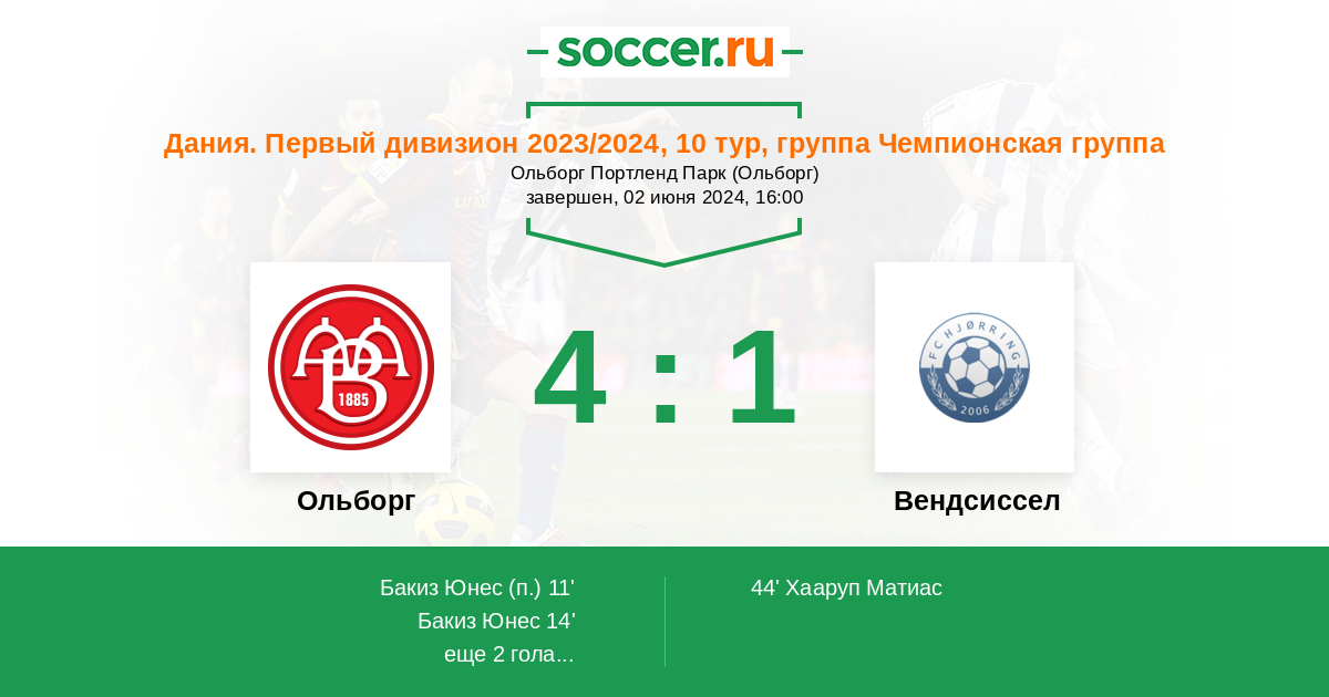 Логотип ОльборгБомхольт Мадс (32) выходит на поле