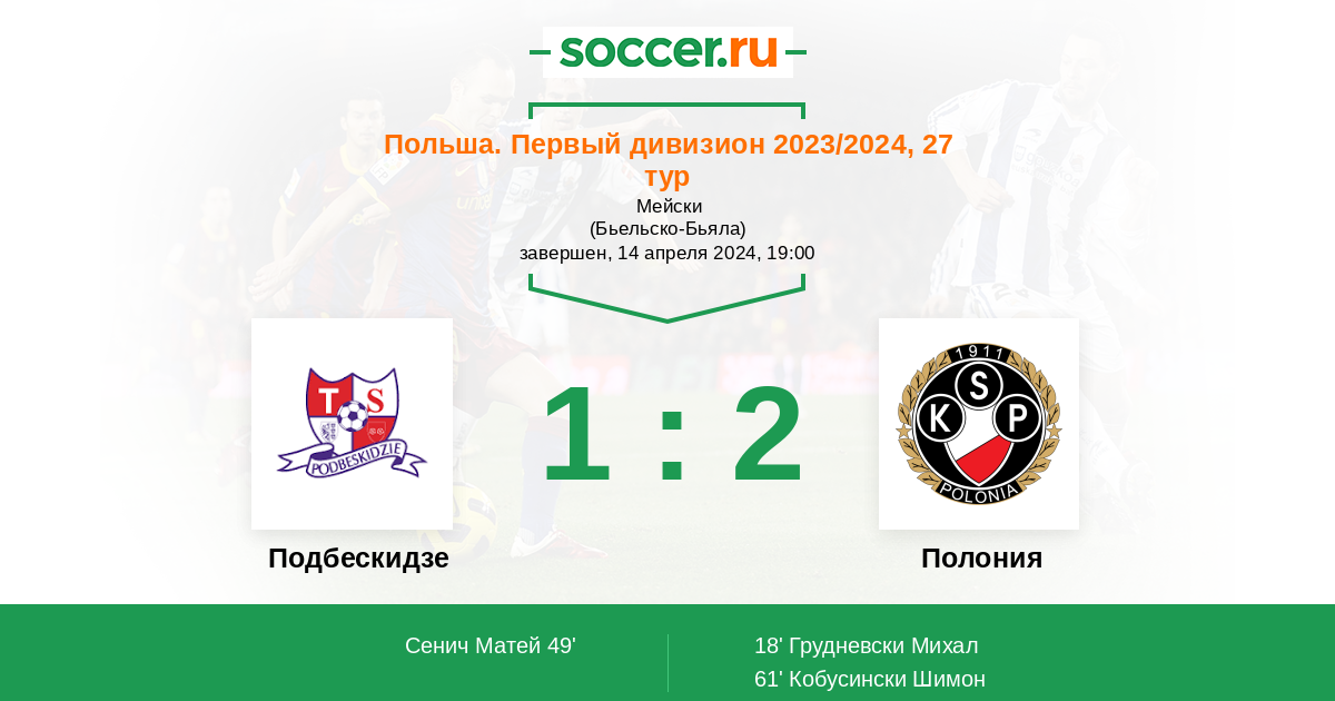 Логотип ПодбескидзеЖиолковски Матеуш выходит на поле