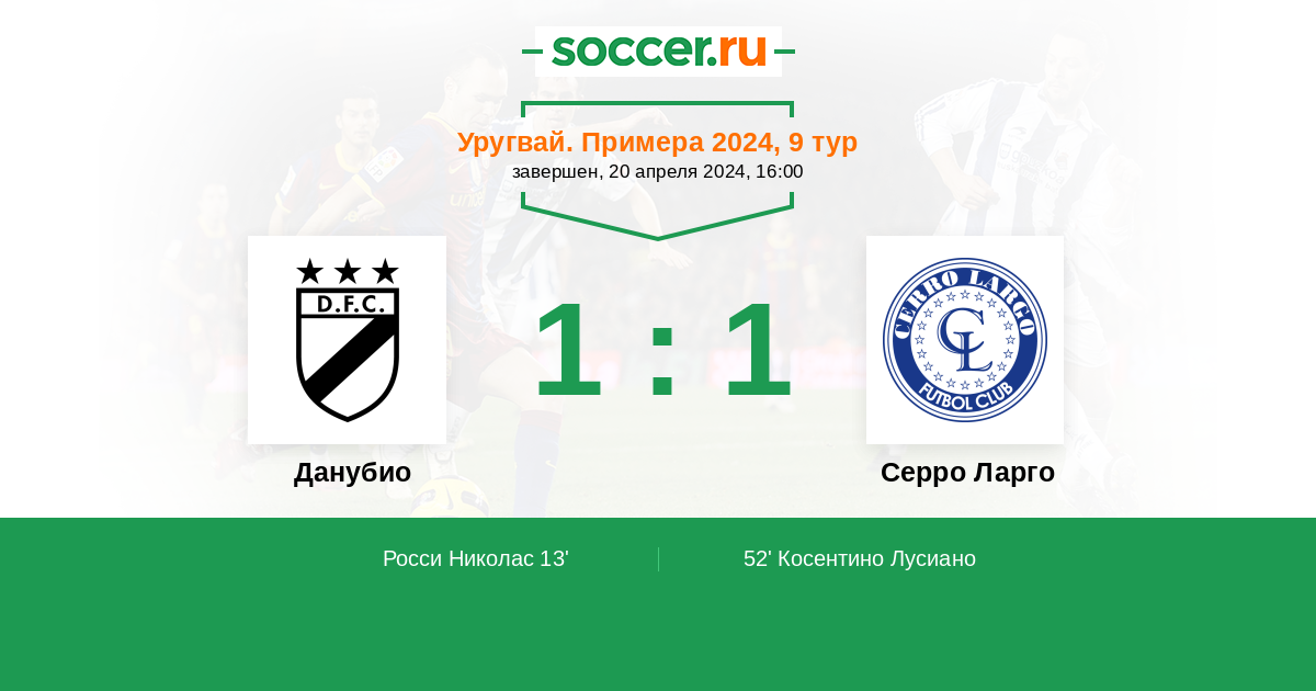 13' ГолЛоготип ДанубиоРосси Николас (11, п) - 1:0