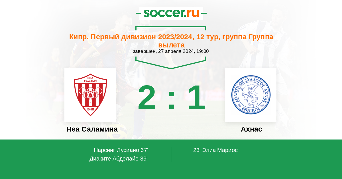 67' ГолЛоготип Неа СаламинаНарсинг Лусиано (7, п) - 1:1