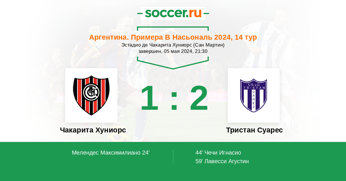 85' Желтая карточкаЛоготип Чакарита ХуниорсПисано Матиас получил ж.к.