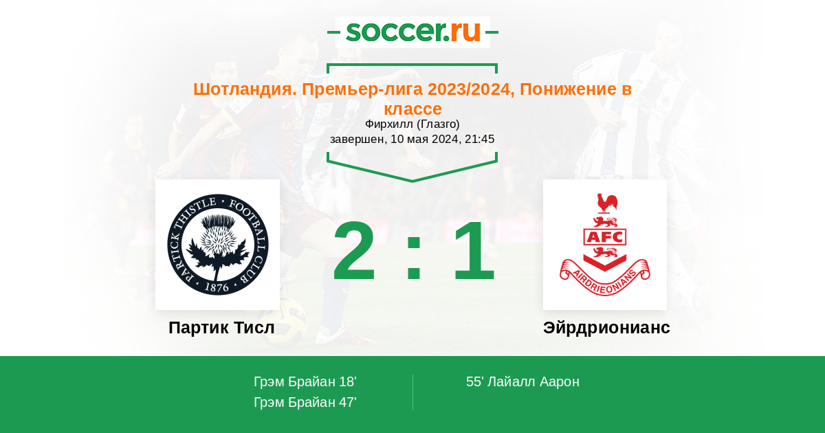 55' ГолЛоготип ЭйрдриониансЛайалл Аарон (24, п) - 2:1