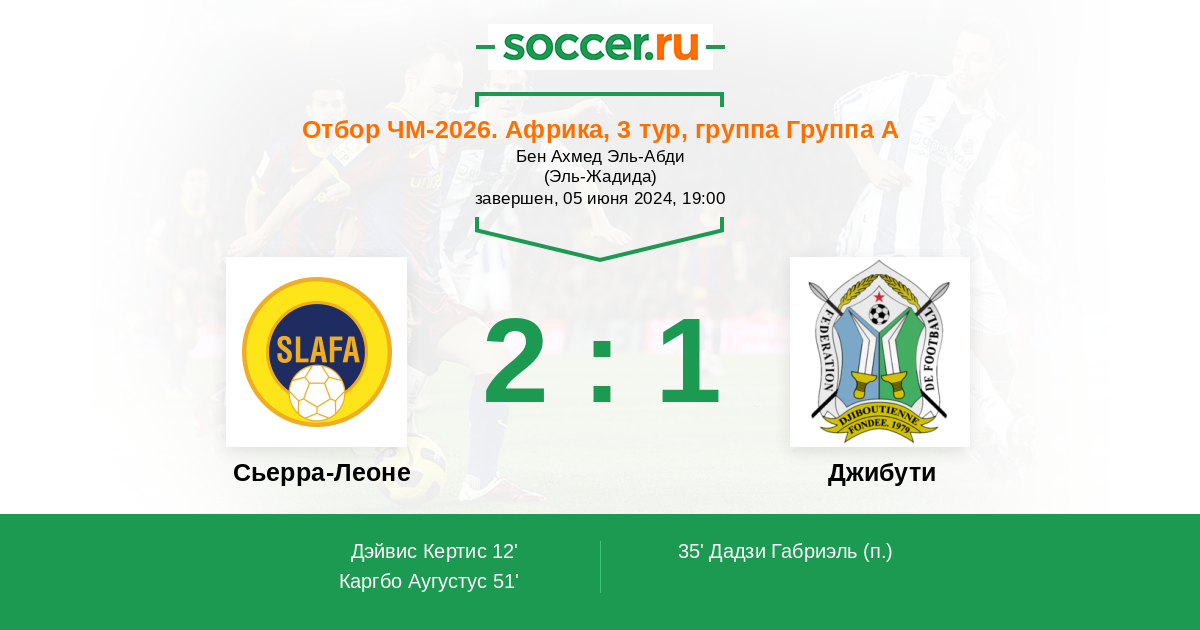 35' Гол с пенальтиДжибутиДадзи Габриэль (3, н) - 1:1 (П)