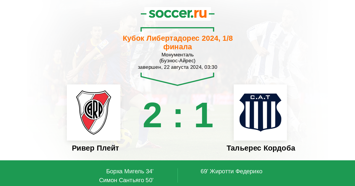 90+2' ЗаменаЛоготип Ривер ПлейтБорха Мигель (9, н) уходит с поля