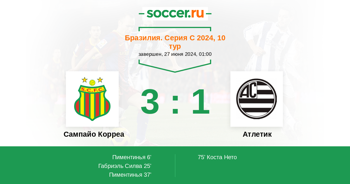 75' ГолЛоготип АтлетикКоста Нето (19, н) - 3:1