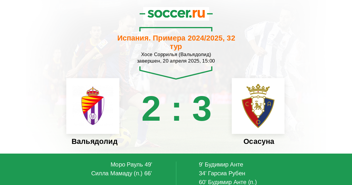 49' ГолЛоготип ВальядолидМоро Рауль (11, п) - 1:2