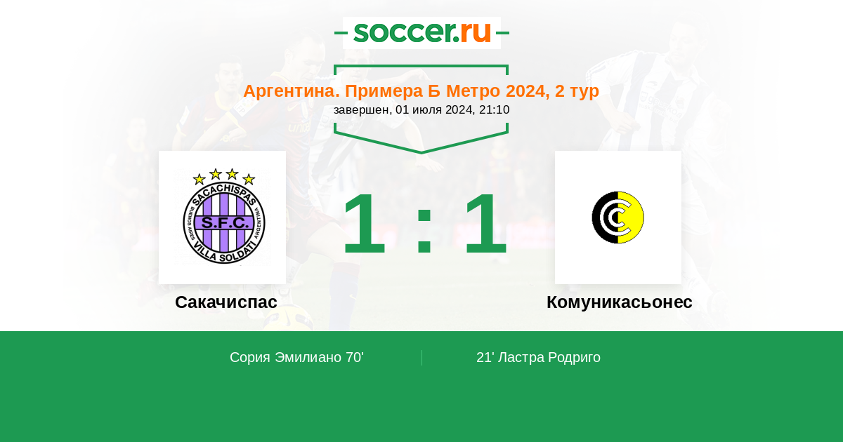 84' Желтая карточкаЛоготип СакачиспасСория Эмилиано получил ж.к.