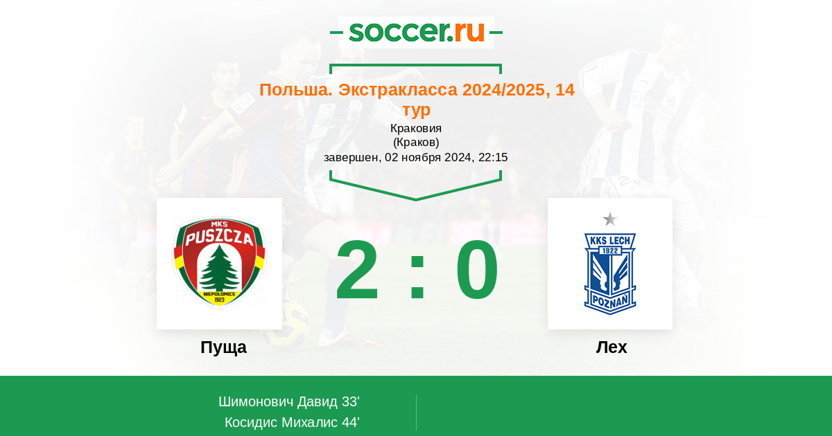 0 | Офсайды | 2 |