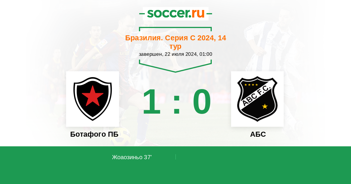 37' ГолЛоготип Ботафого ПБЖоаозиньо (19, н) - 1:0