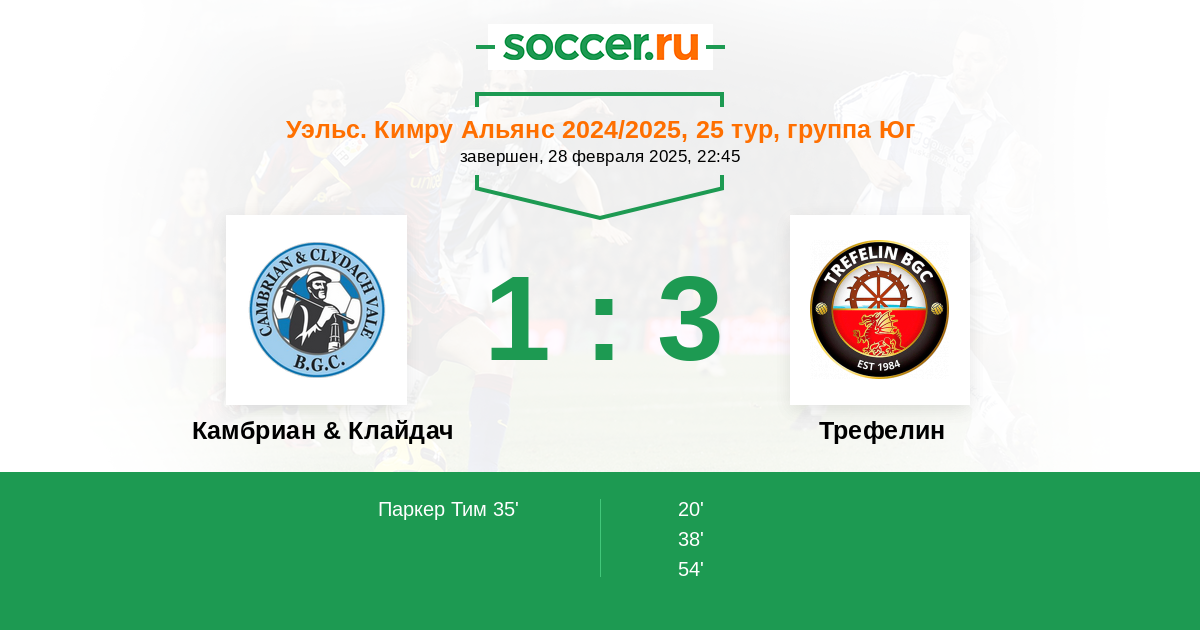38' ГолЛоготип ТрефелинC. Saunders - 1:2