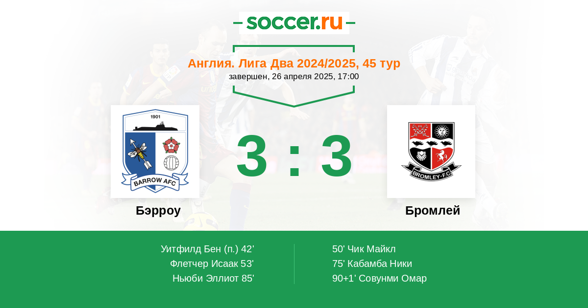 3 | Офсайды | 2 |