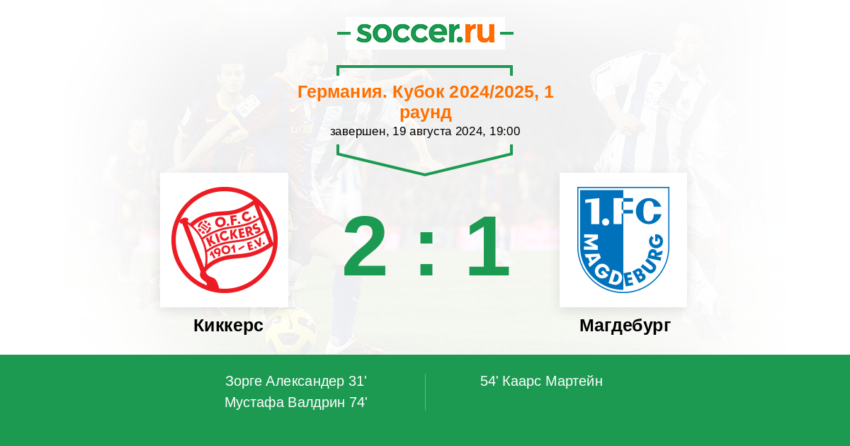 31' ГолЛоготип КиккерсЗорге Александер (5, з) (Логотип КиккерсВакс Марк (17, п)) - 1:0