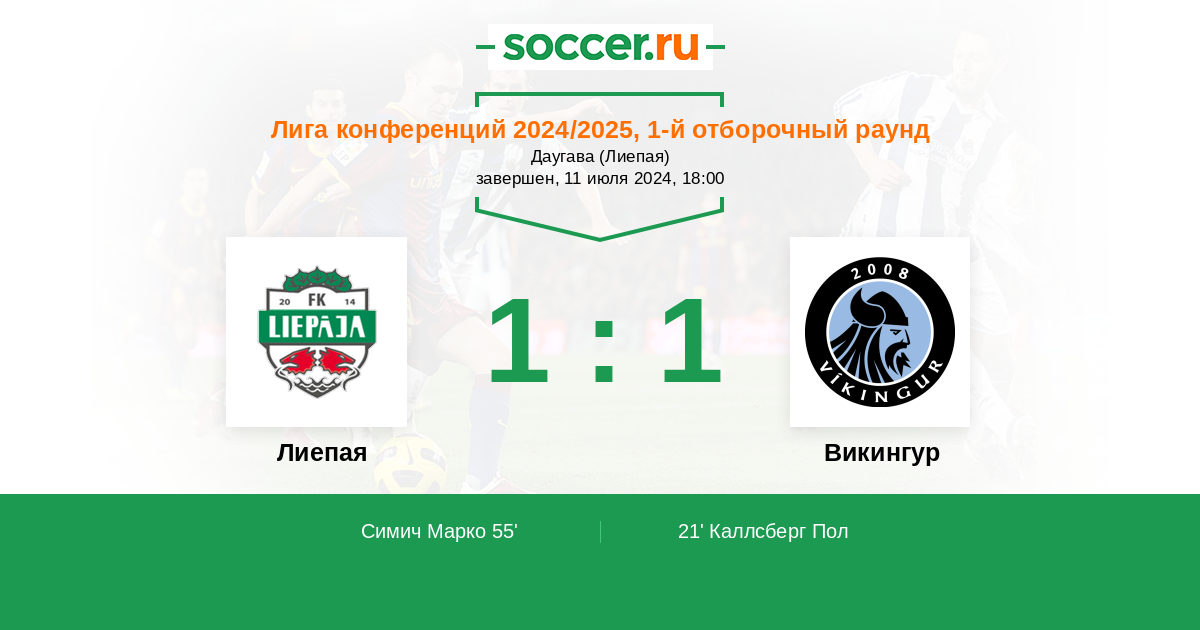 55' ГолЛоготип ЛиепаяСимич Марко (55, з) - 1:1