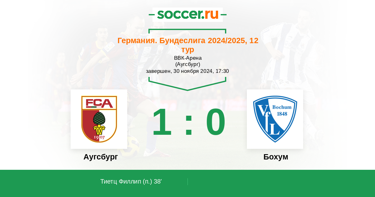 38' Гол с пенальтиЛоготип АугсбургТиетц Филлип (21, н) - 1:0 (П)