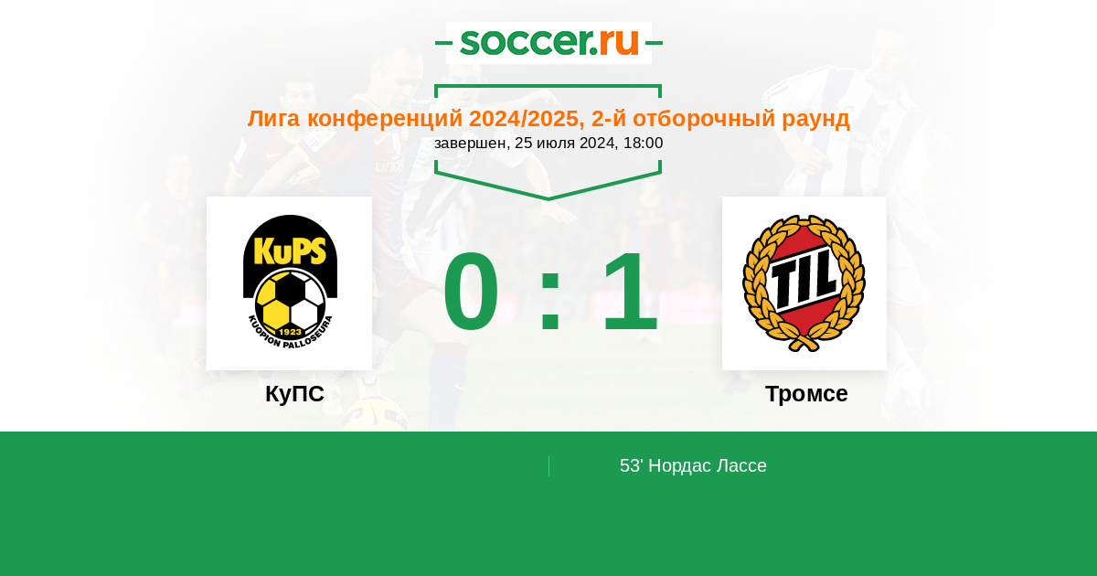 53' ГолЛоготип ТромсеНордас Лассе (9, н) - 0:1