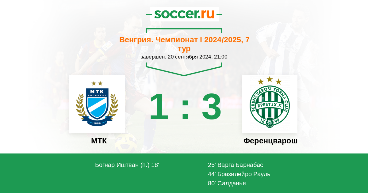 0 | Офсайды | 1 |