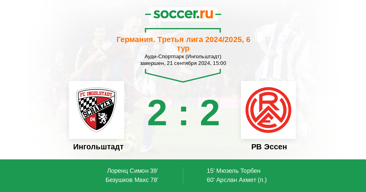 39' ГолЛоготип ИнгольштадтЛоренц Симон (32, з) (Логотип ИнгольштадтМалон Райан (16, з)) - 1:1