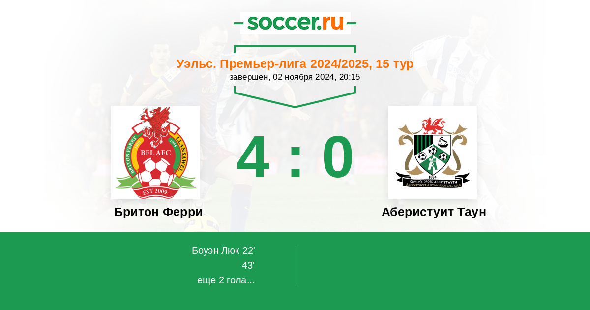 22' ГолЛоготип Бритон ФерриБоуэн Люк - 1:0